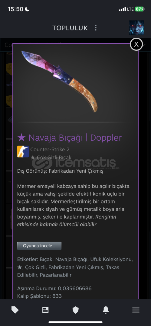 Navaja Bıçağı Fabrikadan Yeni Çıkmış floud 0.3dür teklifleri bekliyorum