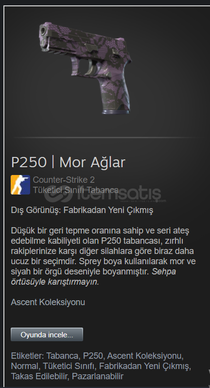 P250 MOR AĞLARFABRİKADAN YENİ ÇIKMIŞ SKİNDİRSADECE TRADE URL VERMENİZ YETERLİDİR