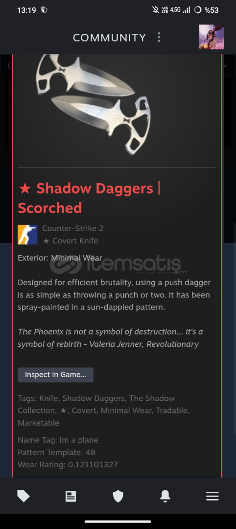 ★ Shadow Daggers | Scorched (Minimal Wear)