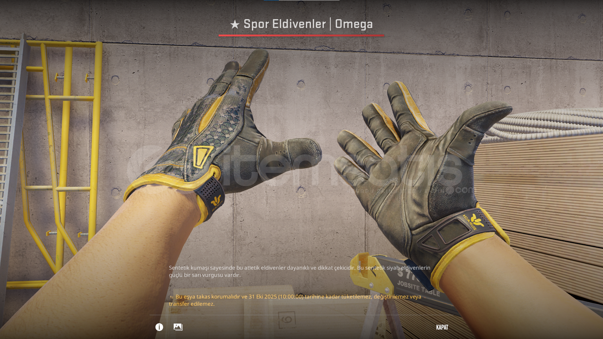 Sport Gloves | Omega (Battle Scared)PAZARLIK YOKTUR!!!Beklememek için satın almadan önce MESAJ ATINIZ!!!STEAM VAC BANINIZ OLMAMALI!!STEAM PROFİLİNİZ HERKESE AÇIK OLMALI!!Ben Aktif değilken almayınız!!!