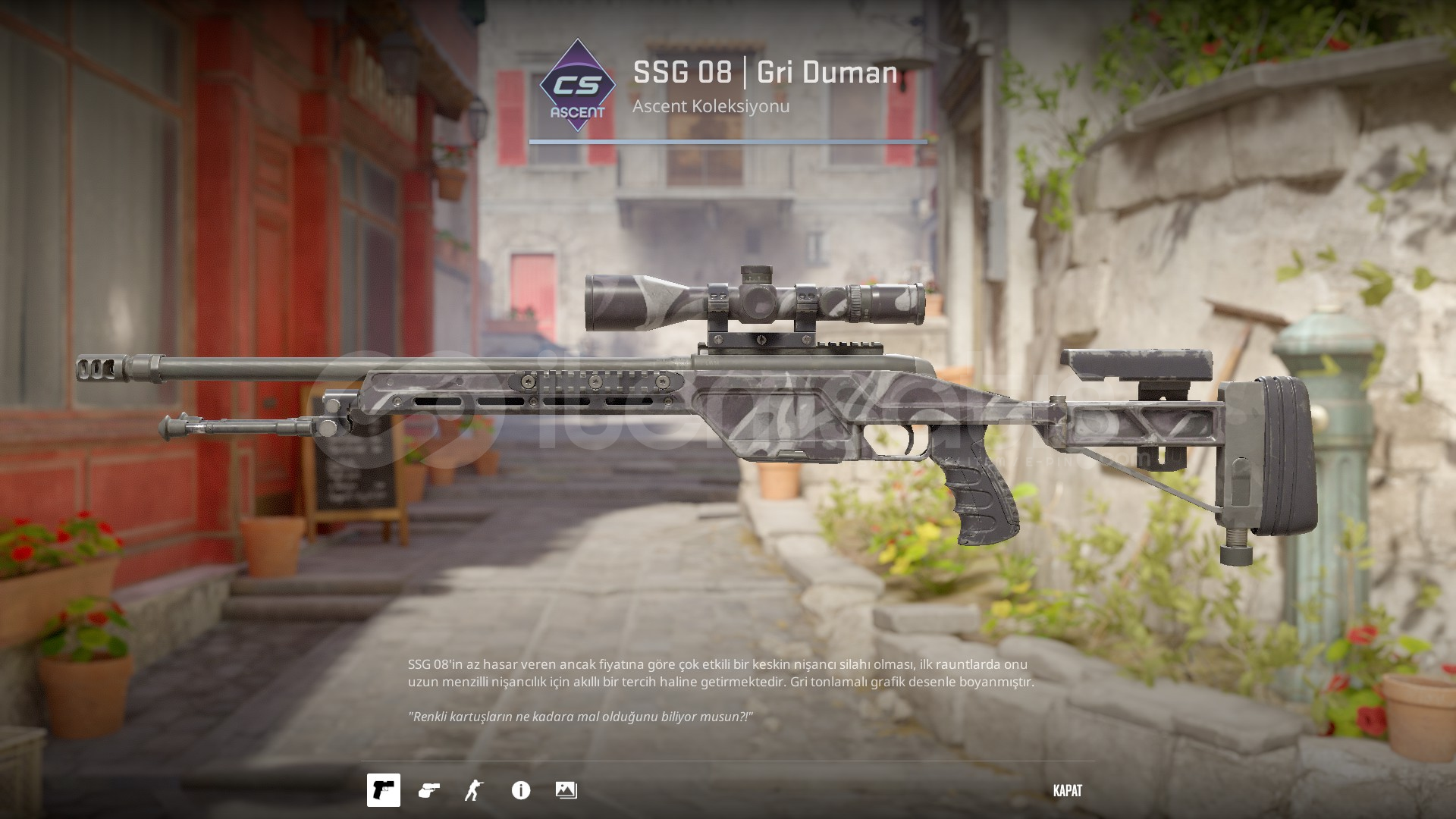 SSG 08 | Gri DumanSteam hesabınızın envanter gizliliği, herkese açık olmalıdır.Steam hesabınızda trade banı olmamalıdır.Çevrimiçi olmamı beklemeden satın alabilirsiniz.Daha fazla ilan için mağazama göz atabilirsiniz.NOT!:Steam Guard eklediyseniz 15 gün, Steam adınızı değiştirdiyseniz 4 saat banınız olur.
