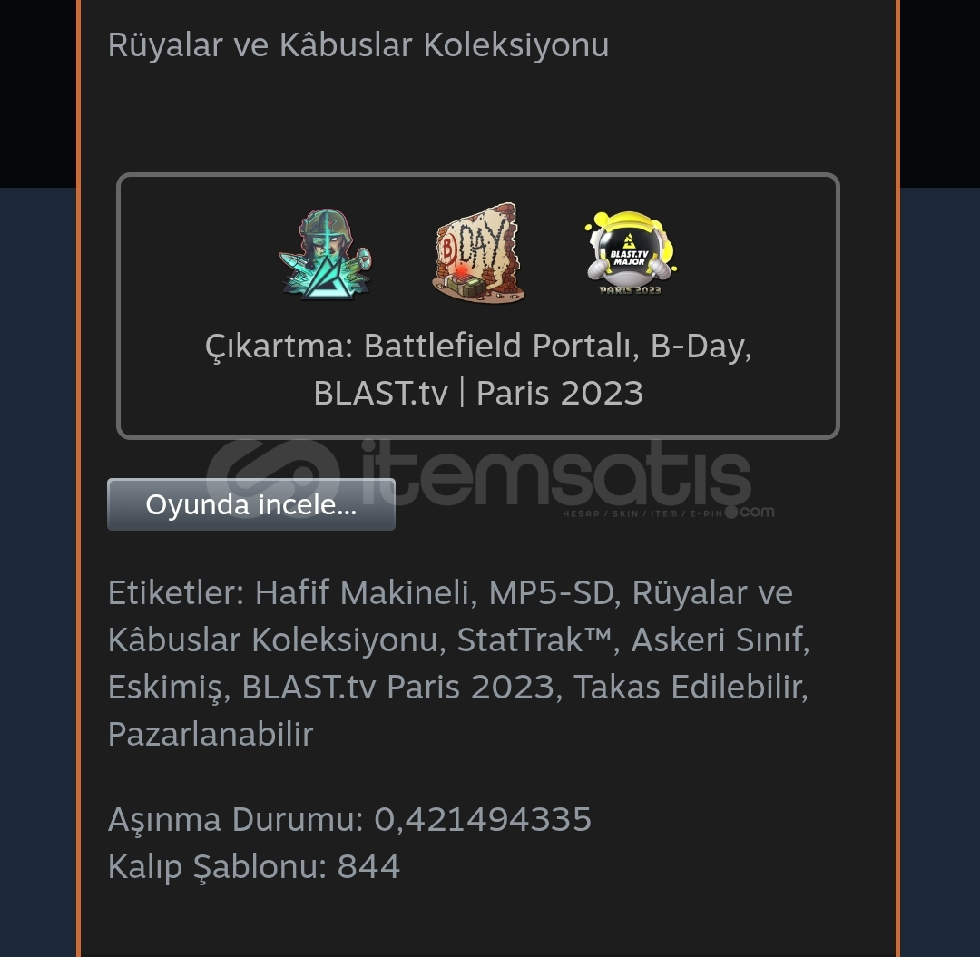 Satın aldıktan sonra trade linki gönder. Trade banın olmasın.Özel Stickerlar : Battlefield PortalıB Day Blast.Tv