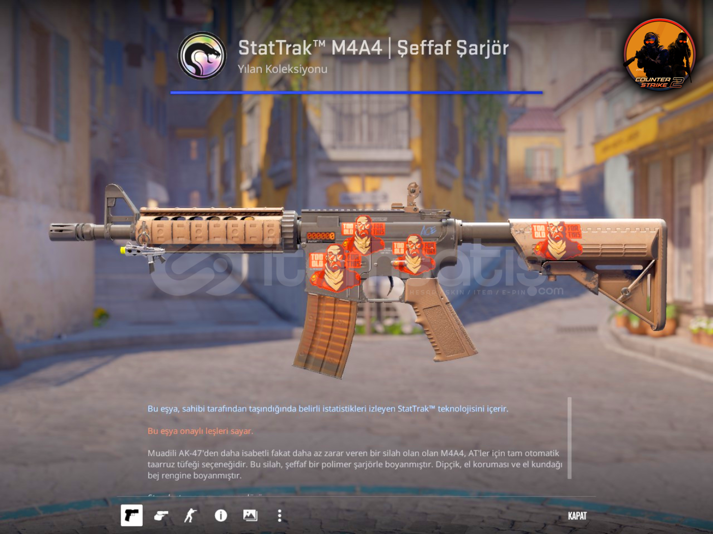 ⚡StatTrak M4A4 Şeffaf Şarjör 4x Stickers 1x Süs