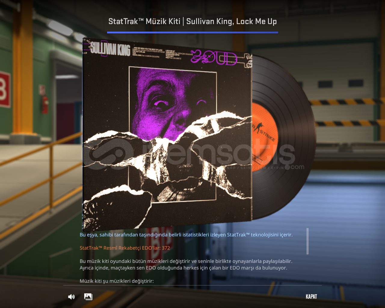 StatTrak™ Müzik Kiti | Sullivan King, Lock Me Up------------------------------NEDEN BİZİ TERCİH ETMELİSİNİZ?TAMAMEN HIZLI VE SORUNSUZ TESLİMAT%100 GÜVENİLİR VE İTEMSATIŞ GÜVENCESİ7/24 HIZLI VE ETKİN DESTEKMÜŞTERİ MEMNUNİYETİNİ ÖN PLANDA TUTAN HİZMET ANLAYIŞIUYGUN FİYAT - KALİTELİ HİZMET DENGESİDENEYİMLİ VE SORUMLULUK SAH...