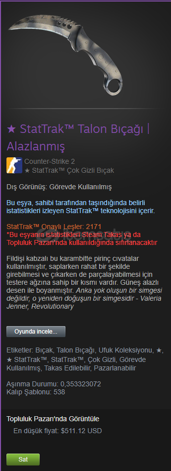 StatTrak™ Talon Knife | Scorched FT