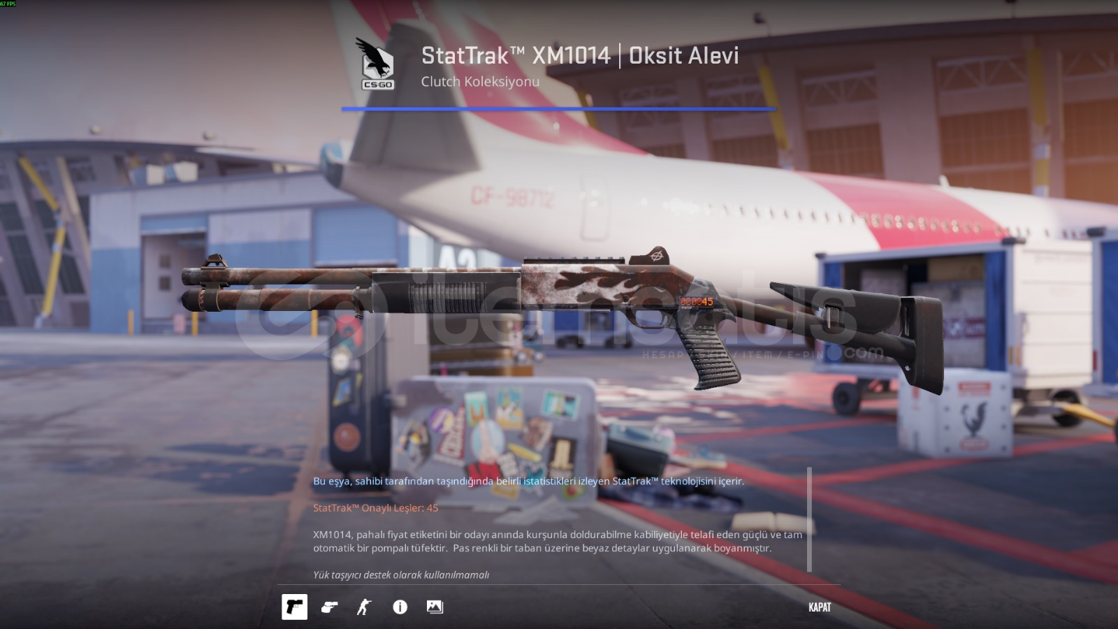 StatTrak™ XM1014 | Oksit Alevi Counter-Strike 2StatTrak™ Askeri Sınıf Pompalı TüfekDış Görünüş: Görevde Kullanılmış Bu eşya, sahibi tarafından taşındığında belirli istatistikleri izleyen StatTrak™ teknolojisini içerir. StatTrak™ Onaylı Leşler: