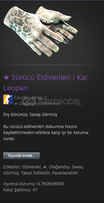 İtem counter strike 2 oyun içi bir eldiven görünümü eşyasıdır.