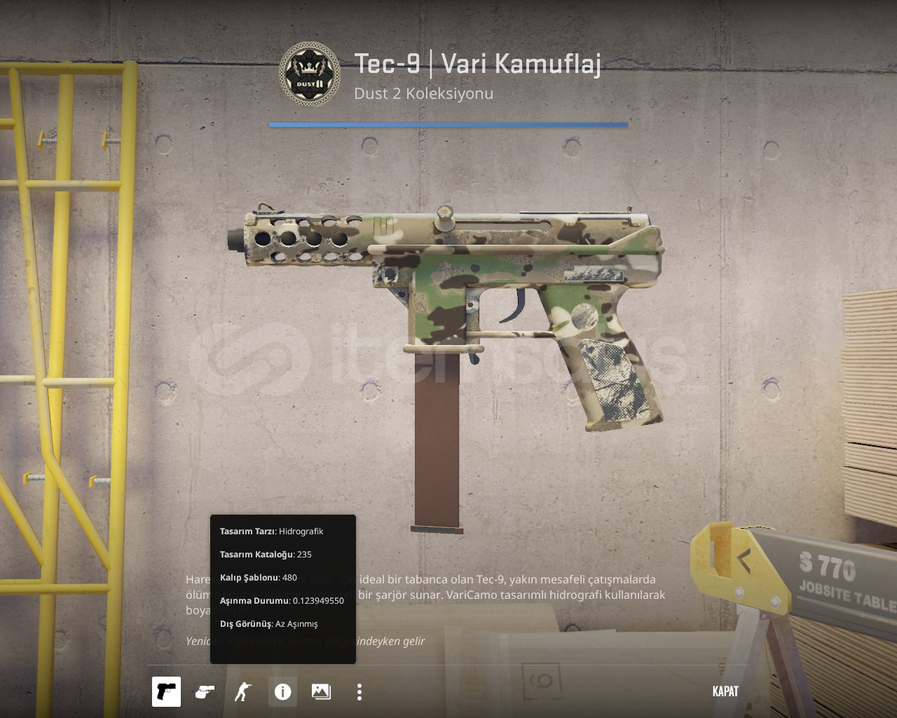 Tec-9 | Vari Kamuflaj Az AşınmışTrade linkinizi göndermeniz yeterlidir.