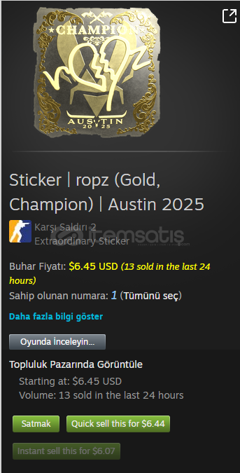 AWP AK-47 M4A1-S ROPZ ALTIN STİCKER MAVCUTTUR İLGİLENENLER DM