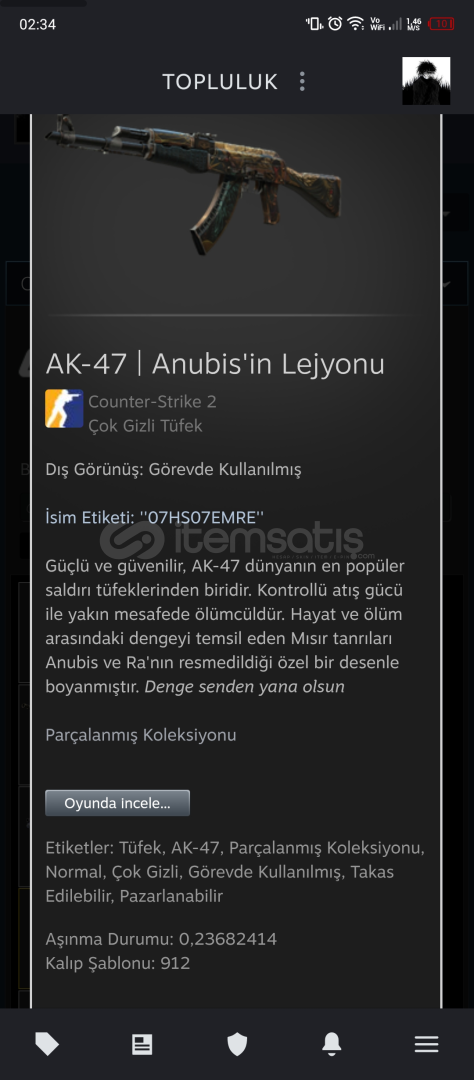 AK-47 | Anubis'in Lejyonu görevde kullanılmış