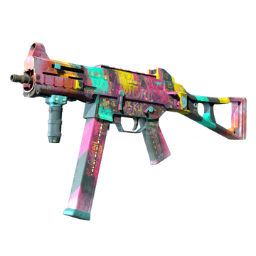 Hafif makineli ailesinin değeri anlaşılamamış ortanca çocuğu. Yakın mesafede oldukça etkili ve tam otomatik bir silah olan UMP-45'in tek dezavantajı küçük şarjör kapasitesidir. Mermi, taç ve diğer tasarımların eskizlerinin altında yer alan neon renkli bantlar bu özel boyalı UMP-45'in temelidir.