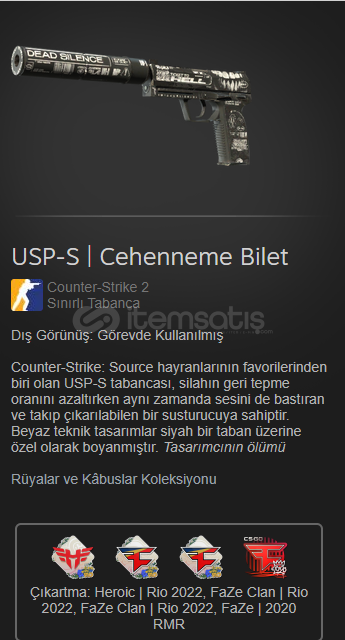 USP-S | Cehenneme Biletgörevde kullanılmış4 çıkartma var üstünde