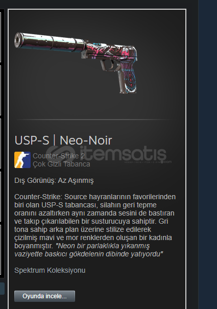 USP NEO NOIRMarket değeri güncel olarak 30 dolar üzerindedir