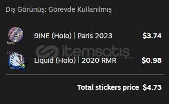 Float: 0.21TRADE İLE GÖNDERİLİR!Steam hesabınızın trade banı olmamalıdır.Steam hesabınızın envanter gizliliği HERKESE AÇIK Olmalıdır.Daha fazla skin için ilanlarıma göz atabilirsiniz.Aktif olmamı beklemeden satın alabilirsiniz.Otomatik teslimat değildir. TESLİMAT EN GEÇ 12 SAAT İÇİNDE YAPILIRÇıkartma: 9INE (Holo) | Paris 2023, L...