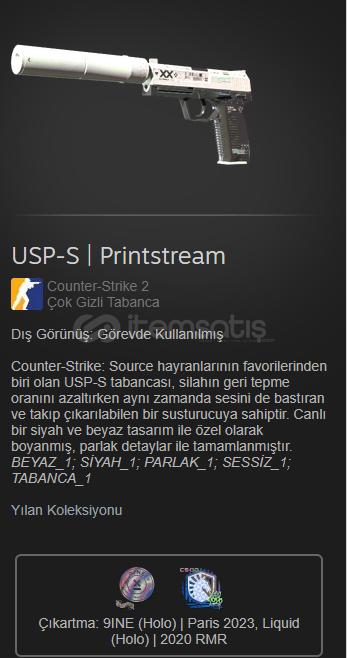 ⭐️USP-S Printstream 0.21 FLOAT (FT) 2 STİCKER⭐️