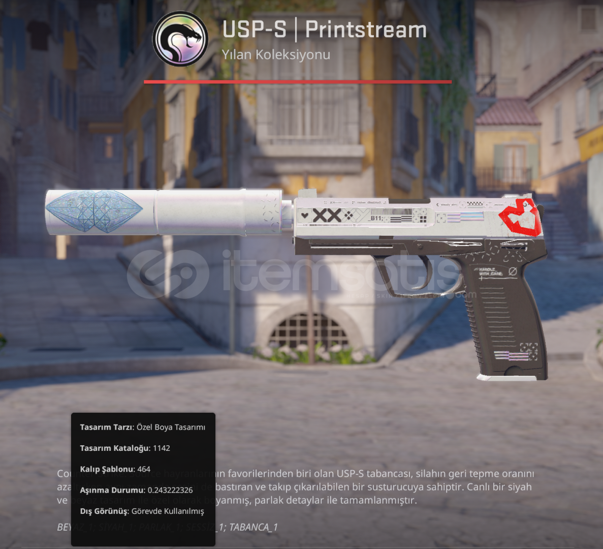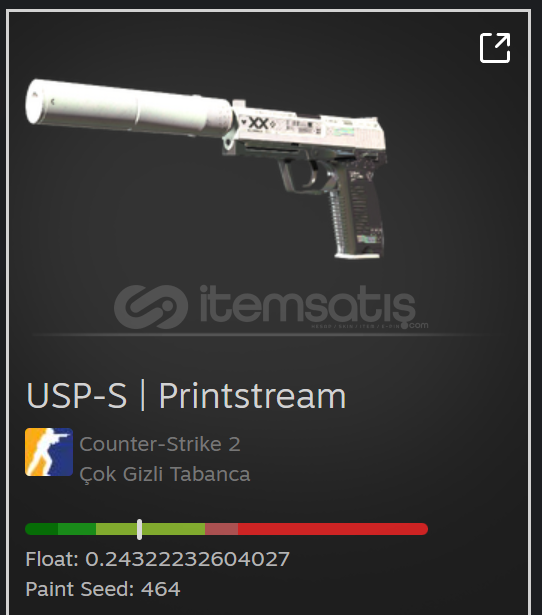 USP-S | PrintstreamÜZERİNDE 3 ADET STİCKER BULUNMAKTADIR. STİCKERLARIN DEĞERİ 7.99 DOLAR ETMEKTEDİR.Float: 0.24322232604027Paint Seed: 46412 saat içerisinde teslim.SATIN ALMADAN ÖNCE MUTLAKA OKUYUNUZ!1- STEAM HESABINIZIN TRADE BANININ KESİNLİKLE OLMAMASI GEREKMEKTEDİR.2- STEAM HESABINIZIN ENVANTER GİZLİLİĞİ HERKESE AÇIK OLMASI GEREKMEKTEDİR.AKTİF OLMADIĞIM ZAMANLARDA Bİ...