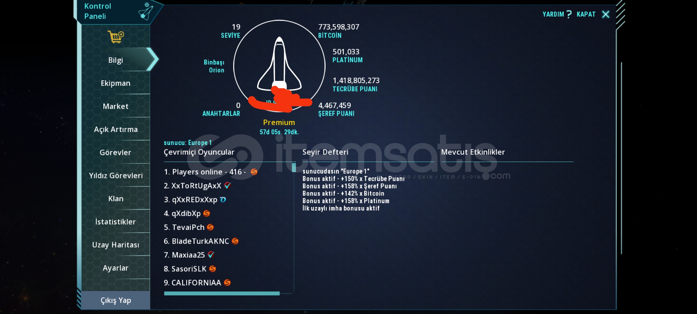 Avrupa server 19 seviye 32 LG4 7 mavi 5 kirmizi 4 hangar