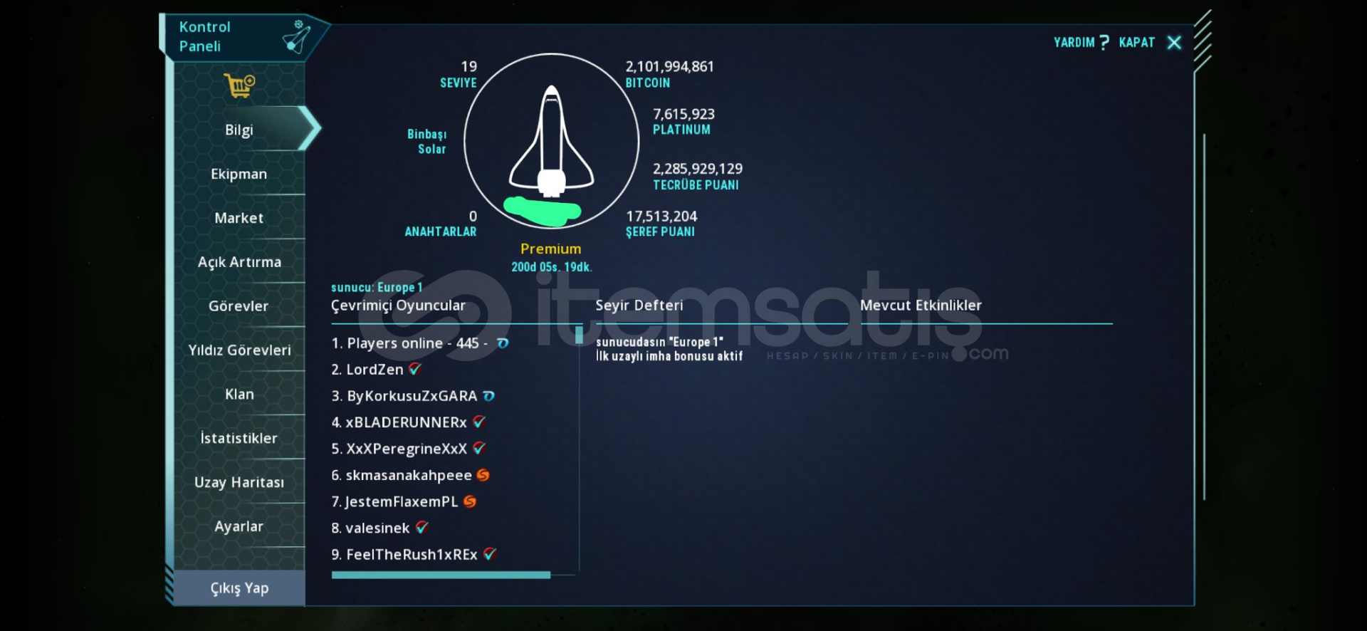 EU HESAP 7.6 M PLT17M ŞEREF200 GÜN VİPHYPERİON V HYPERİON G4.1 M X4 860K X6ŞAHSİ MÜKEMMEL HESABIMDIR SATILIKTIR .