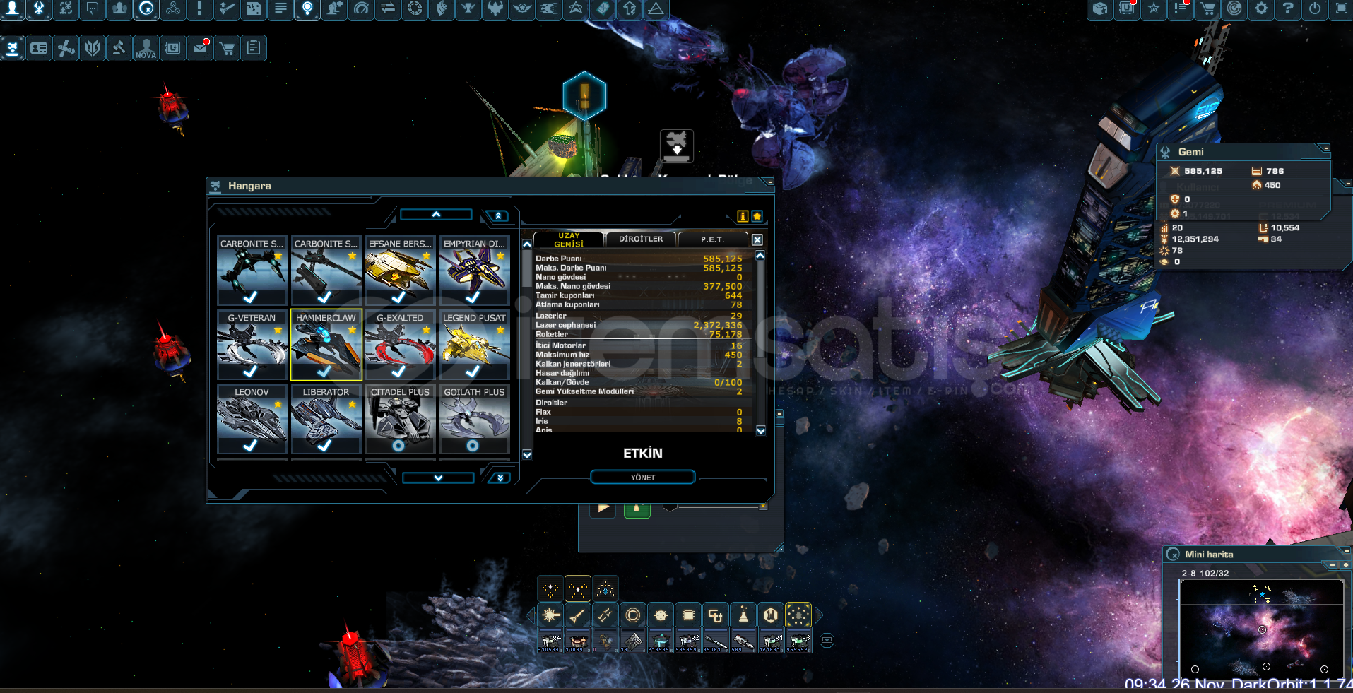 BOT KULLANILMAMIŞTIR ASLAÜRÜN FOTOLARDAKI GIBIÜRÜNE NEREDEYSE 1500 TL EPİN YAPILMIŞHAMERCLAW VB. GEMİLER ALINMIŞ.PRO GÖREVLERI HEPSI TAMAMLANMIŞ GÜZEL ORTALAMA BİR ÇAR.ALANA HAYIRLI OLSUN