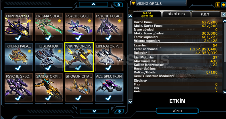 DMG:+18 Oyuncu hasarı DMG:+7 Lazer hasarı DMG:+17 Oyuncu gemılerı hasarı DMG:+22 OYuncu gemilerine hasar