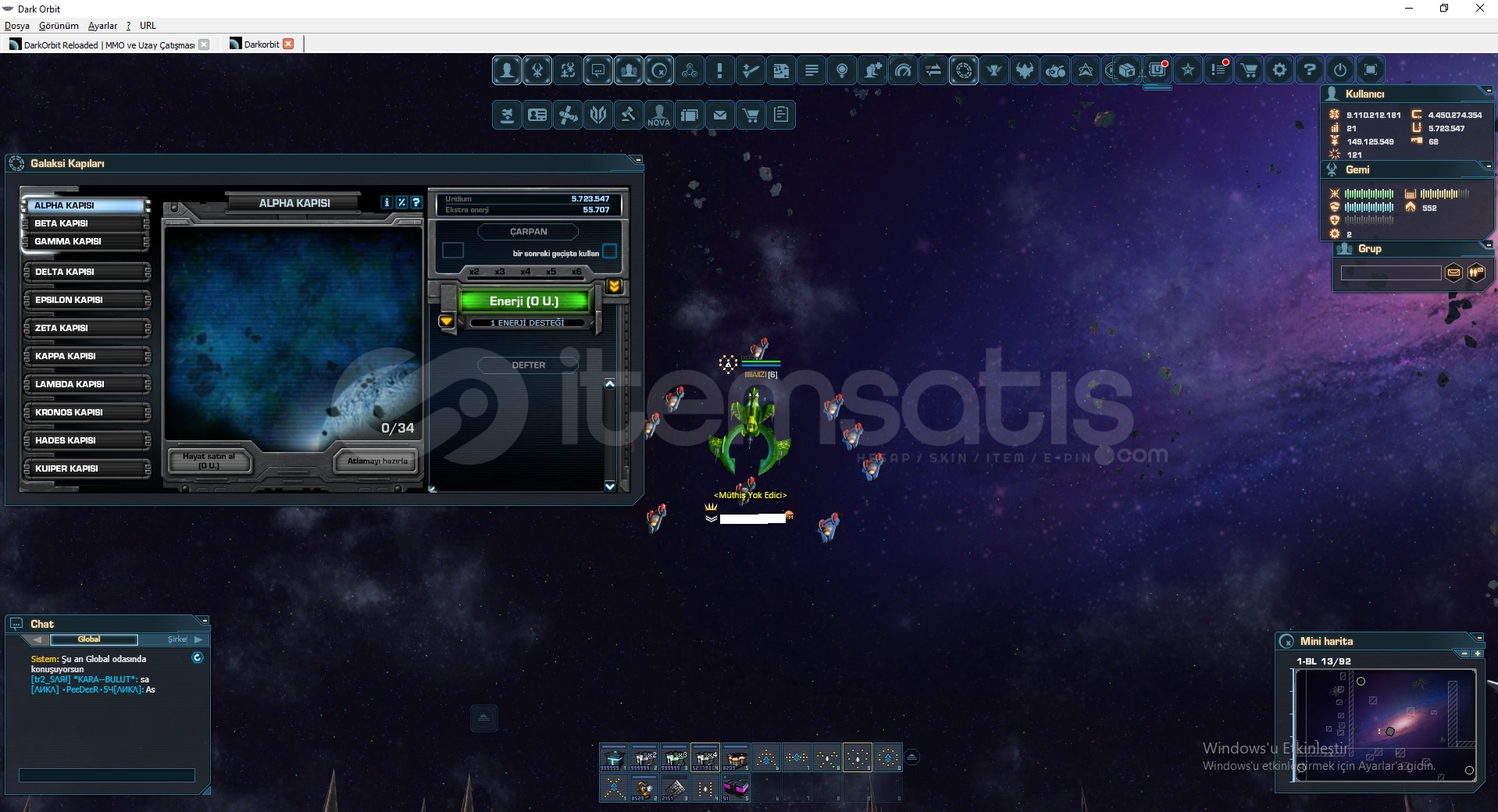 - - -2,5 ÇİZGİ SAYILIR HESAP TR2-3 İTEM SATIS VEYA İTEMCİ.COM SİTE ÜZERİNDEN SATILIKTIR HARİCİ YAZMASIN FİYAT 3.500 TL!! - - - -4.450.274.354 CREDİTS5.723.547 URİDİUM150.500 RİNUSK17.000 TAKİP3.250 O-İL1.500 HYDRA ALAŞIMI10 SPARTAN100K GG GG ( İSTEDİĞİNİZ KAPIYI BOL BOL DÖNEBİLİRSİNİZ !!! )8530 ADET EMP-01( HEMEN HEMEN BÜTÜN UÇU...