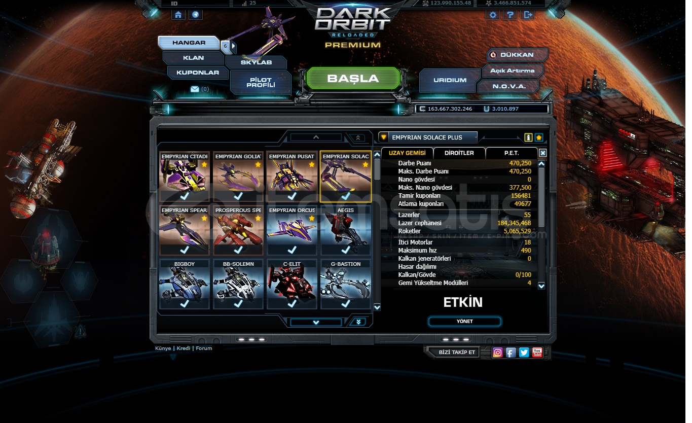Hesabım Binbaşıdır. Herhangi bir bot ya da bug banı bulunmamaktadır. Orcus'un da katlamasız %32 ŞP bulunmakta olup Nova ile beraber %43 olmaktadır. Gemi de 8 adet OS-L ve 5 adet AM-L bulunmaktadır. Hepsi 18 leveldir. Gemim savaş gemisidir. Hasarı gayet yerinde ve yeterlidir. Pluslarında güzel modüller bulunmaktadır. (Link üzerinden modülleri kontrol edebilirsiniz.) Hesabı aktif olarak kullandığımdan dolayı bilgilerde değişiklik olabilir.