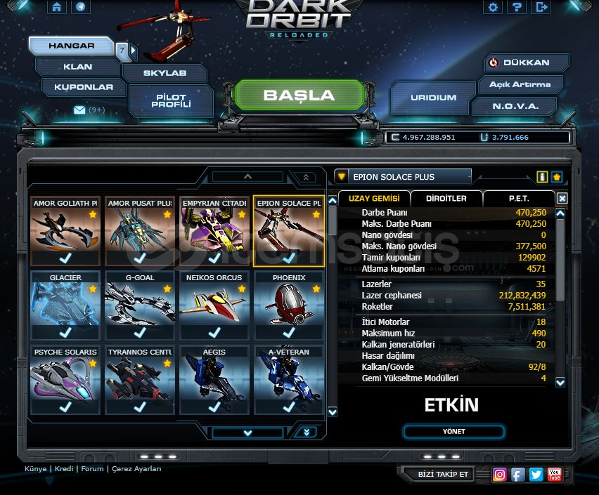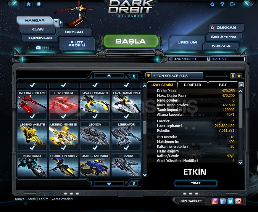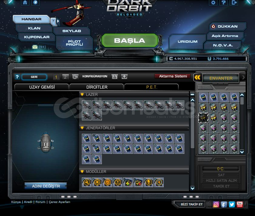• Hesabın cephane, geliştirme vs. diğer tüm detaylarına linkten bakabilirsiniz.