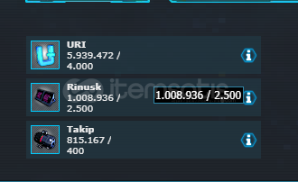 https://www.accinsight.info/userData/17e094dd-d59b-43ce-aa16-af43dd18b31c?server=tr4Hesap acemi albay, 2014 kayıtlı hesap hiç ban yememiş ve hiç bug kullanılmamıştır. 100'lük ve BL görevleri yapılmamıştır rahatlıkla sıralama kasılabilir.1M Rinusk815k TakipHesabımda bulunan bazı modül kombinleri:Orcus20 DP20NPC Hasarı13 Kalkan Delme5 Hız3 ŞerefCita+24 Oyuncu Gemi Hasarı...