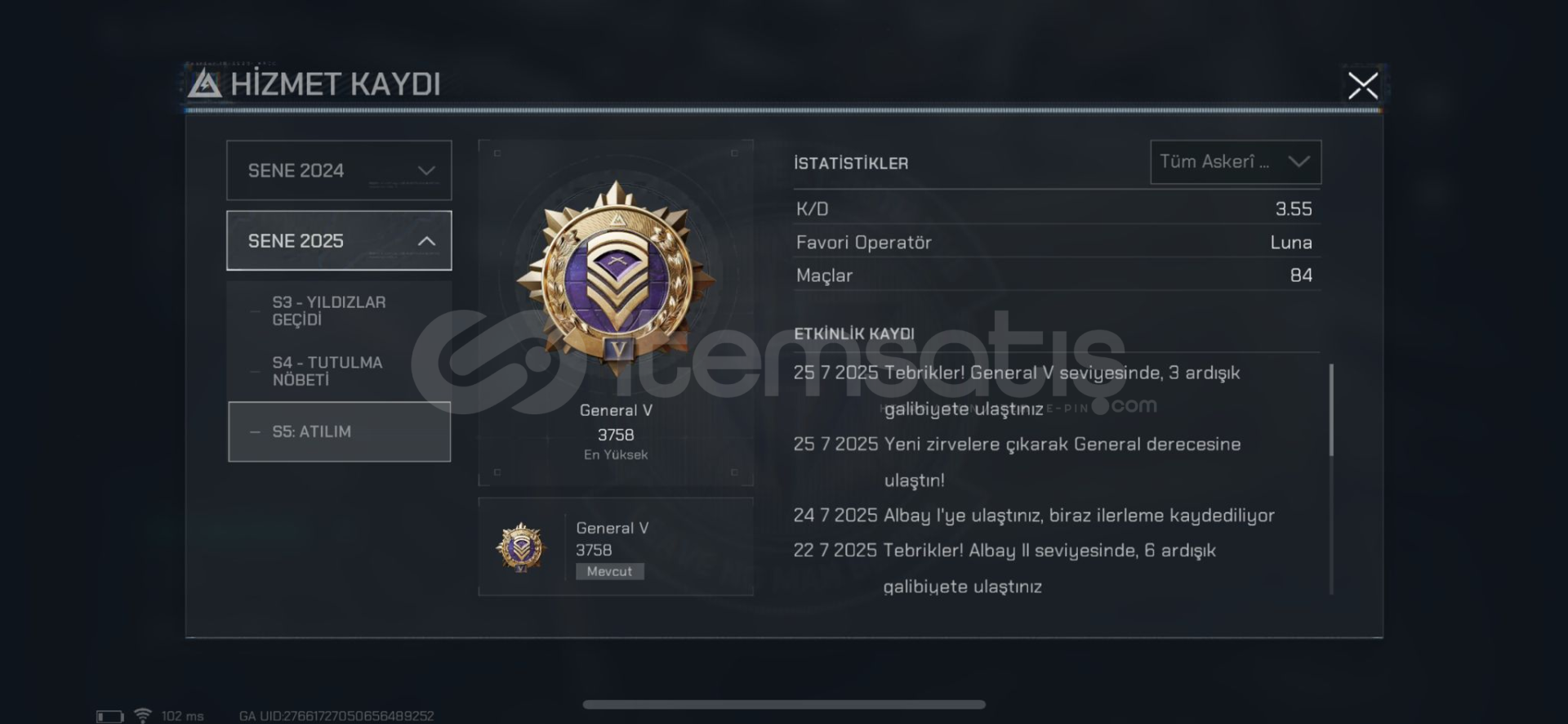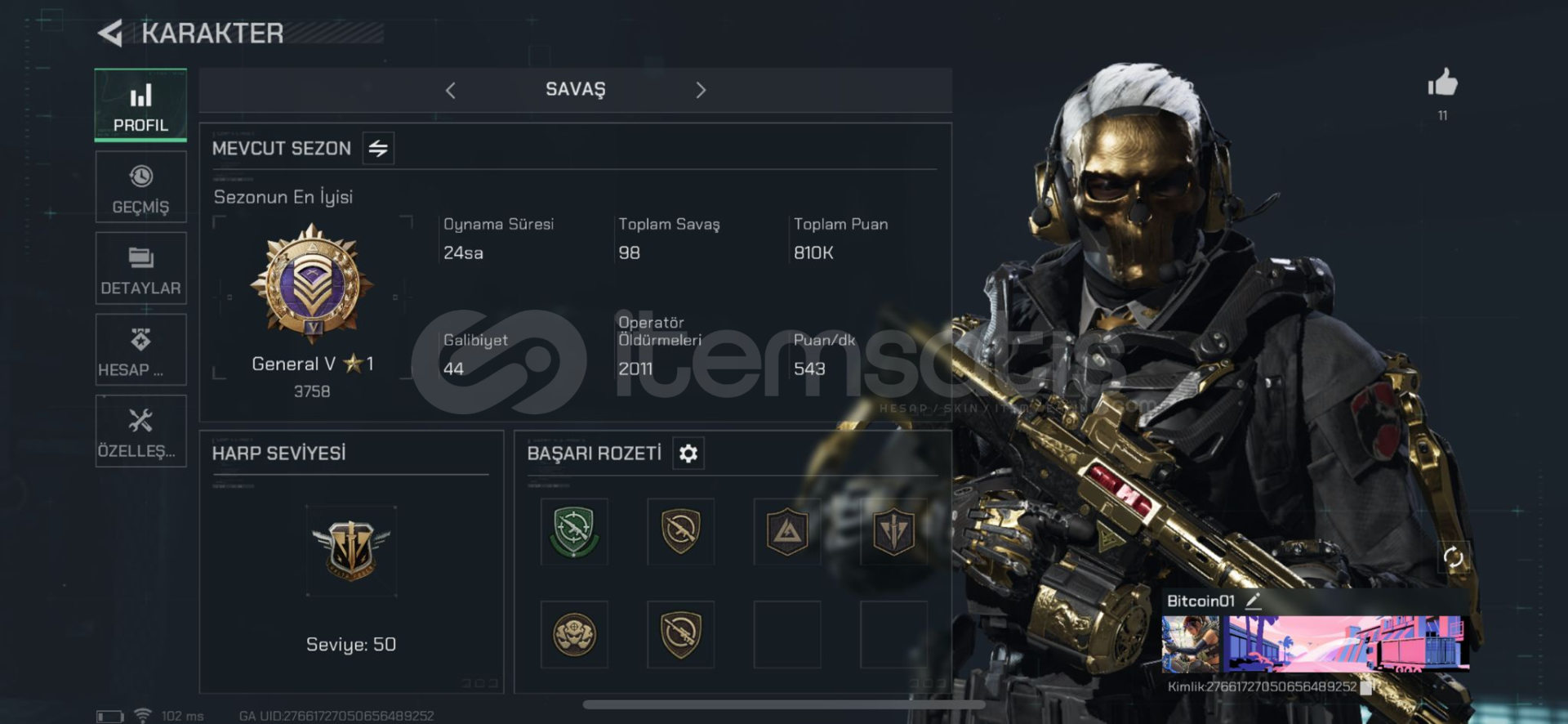 GÜLÜN İHTİŞAMI PAKETİ VE ONLARCA SİLAH VE ARAÇ GÖRÜNÜMÜ VAR 10 BİN LİRANIN ÜZERİNDE HARCANMIŞ HESAPTIR. ACİLİYETTEN UCUZA SATIYORUM ALANA HAYIRLI OLSUN. MAİL İLE BİRLİKTE VERİLECEKTİR İÇİNİZ RAHAT OLSUN