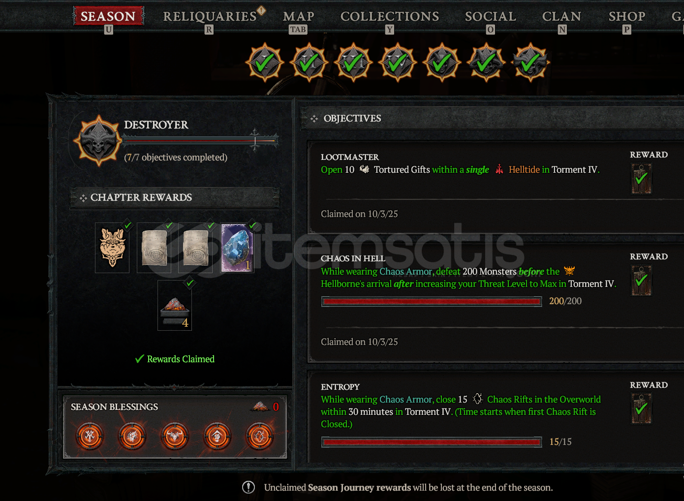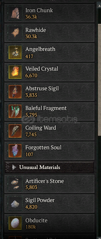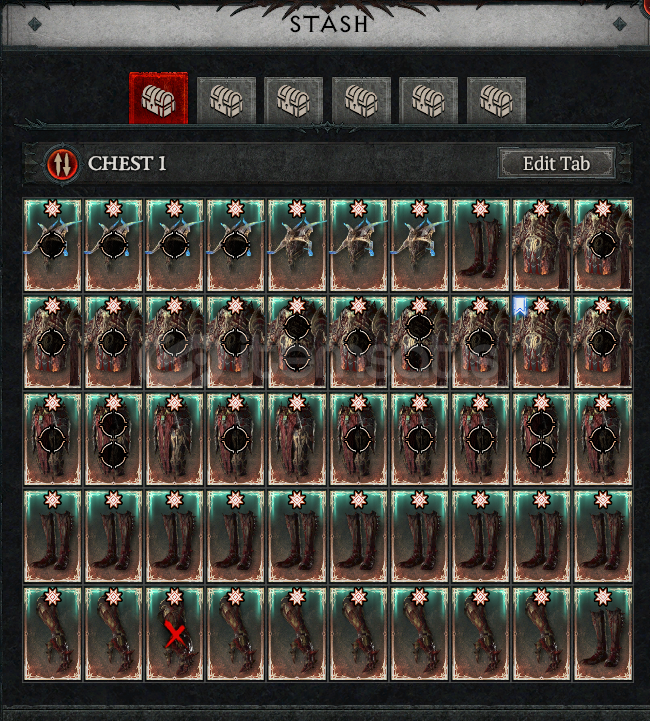 1 Full Stash Chaos Eşyası, 1 Full Stash Boss Mat, 1 Full Stash Nightmare Sigil