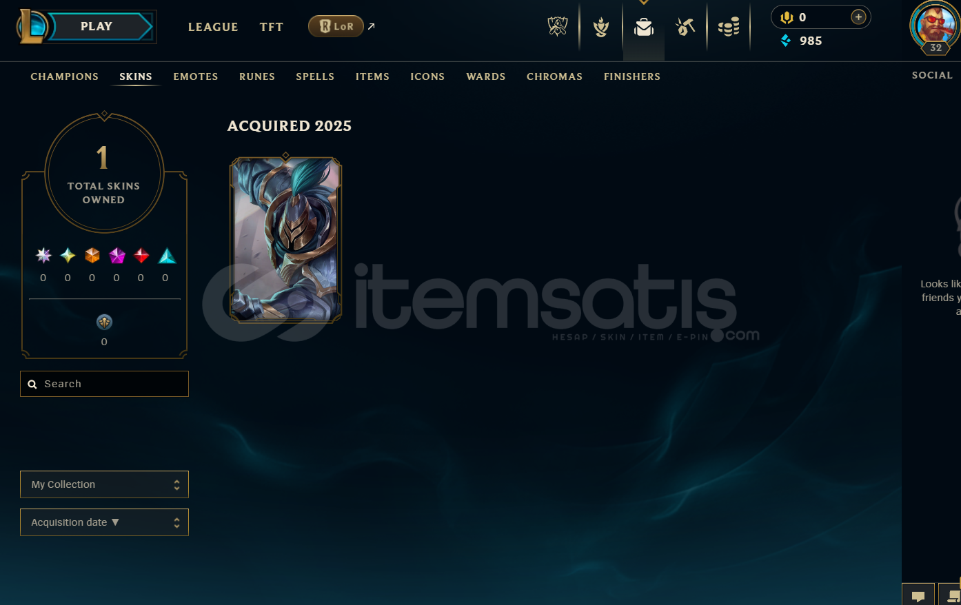 EUNE Unranked | 1 Kostüm - 30 Hero | LoL Hesap