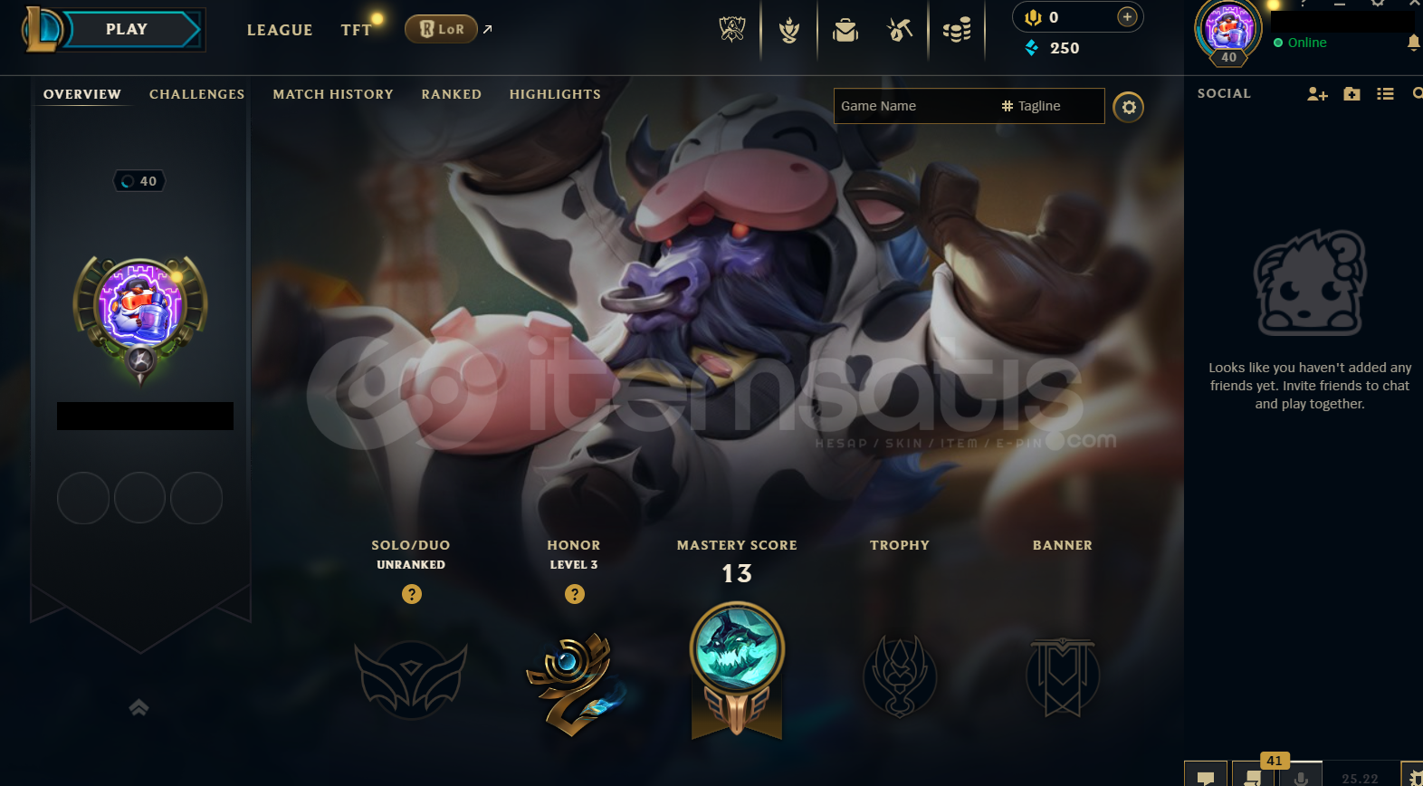 HESAP DETAYLARI:Hesap hiç ban yememiştir ve takdir seviyesi 3 dür.Hesap EUNE Unranked LoL Hesabıdır.İçerisinde 1 Kostüm 35 Hero ve 3 Adet İade Hakkı Mevcuttur.HESAP HAKKINDA:Kendi mail adresinize kayıt edebilir, etkinleştirmeyi kaldırabilir ve şifresini değiştirebilirsiniz.Hesaplarımızda hiç bir sıkıntı çıkmamaktadır.Herhangi bir sıkıntıda en iyi des...