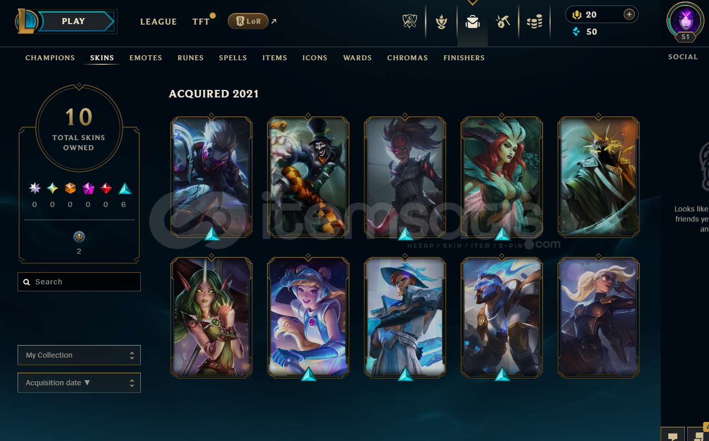 EUNE Unranked | 10 Kostüm - 48 Hero | LoL Hesap