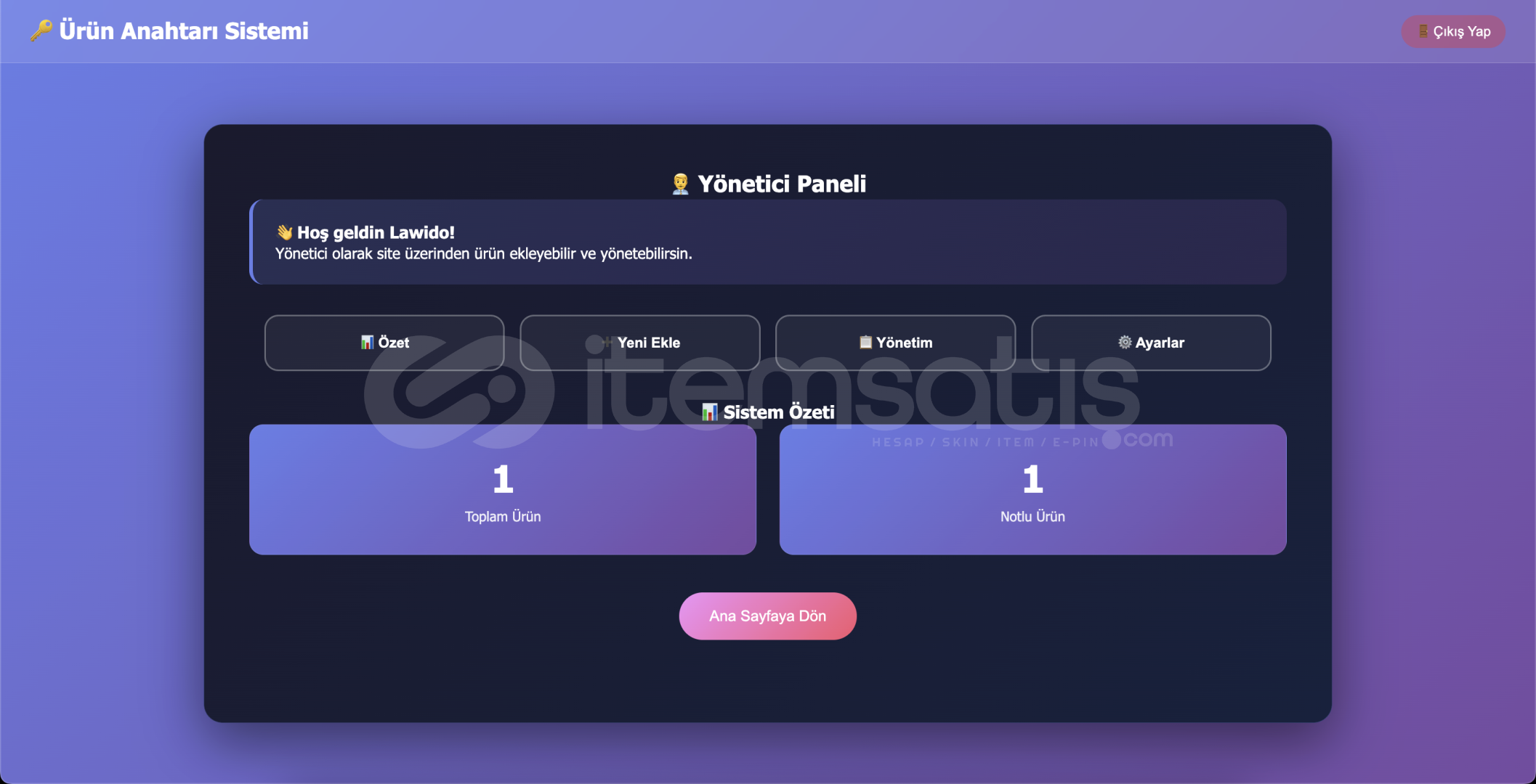 1 Aylık Lisanslı Ürün Anahtar Sistemi | Yönetici