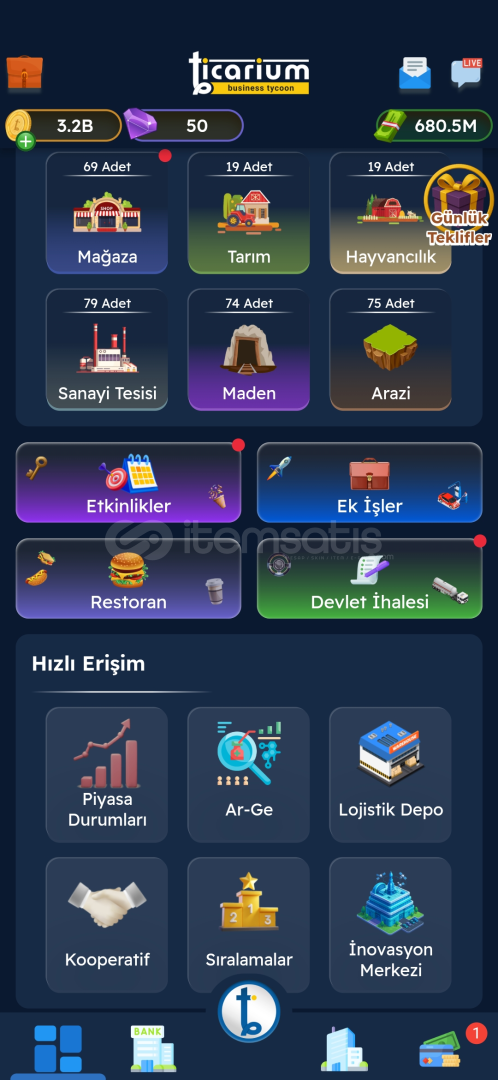 Göründüğü gibi bir hesap argeleri sağlam sanayi maden sağlam mağaza sağlam bir abimin hesabı artık fazla oynayamadığı için satılık no ads vip falan aktif 20 gün küsür olması lazım no adsnin 1 haftası var 3.5 k coin var