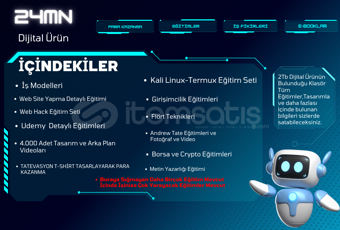 2Tb Dijital Ürünün Bulunduğu Klasör Tüm Eğitimler,Tasarımla ve daha fazlası içinde bulunan bilgileri sizlerde satabileceksiniz.Bu Eğitim Setini Almaya Normalde Almaya Kalsanız Bu Fiyatın 2 3 Katı Paranız Gider Biz Size Nerdeyse Bedava Fiyatına Veriyoruz + Olarak Sizlerede Satış İzinini Vermekteyiz.İÇİNDEKİLERİş Modelleri Kali Linux-Termux Eğitim Seti Web Site Yapm...