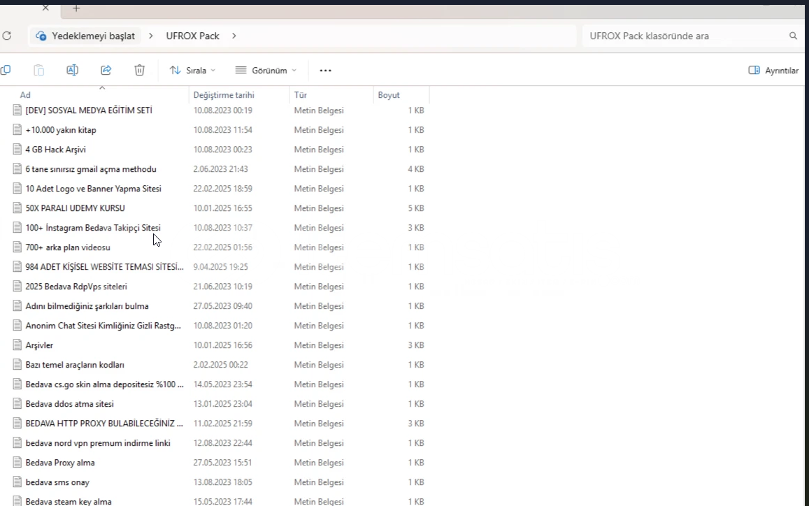 Packin içindekiler fotoğraflarda görünüyor+AYRI SORUSU OLAN ÇEKİNMEDEN YAZABİLİR Tüm Paralı/Parasız Arşiv , Method , Packler bulunur.OTOMATİK TESLİMATTIR BEN AKTİF DEĞİLSEM BİLE ALIP KULLABİLİRSİNİZPİYASADAKİ TÜM METHODLAR VARDIR,500 600 BELKİ DAHA FAZLA netfix,kız sesleri,youtube,tiktok,instagram,takipçi beğeni botu vs her şey vardı...