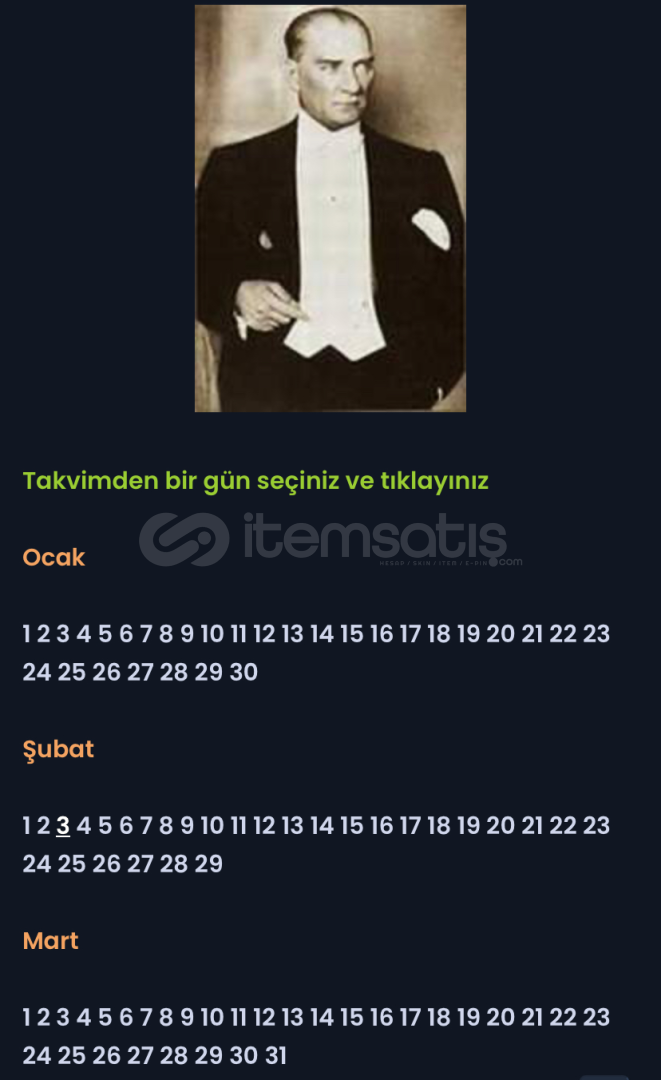 Otomatik Teslimattır Aldığınız Anda Kullanabilirsiniz.İçindekiler:-SÜPER DOLU FOTOĞRAF ARŞİVİ-1 YIL 12 AY 365 GÜN HERGÜNÜN OLAYLARI-ULU ÖNDER MUSTAFA KEMAL ATATÜRK TAKVİMİ