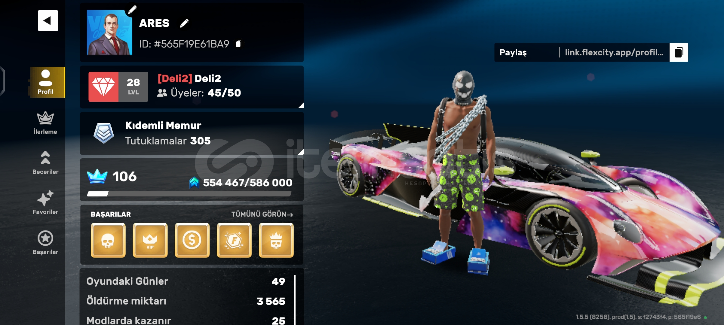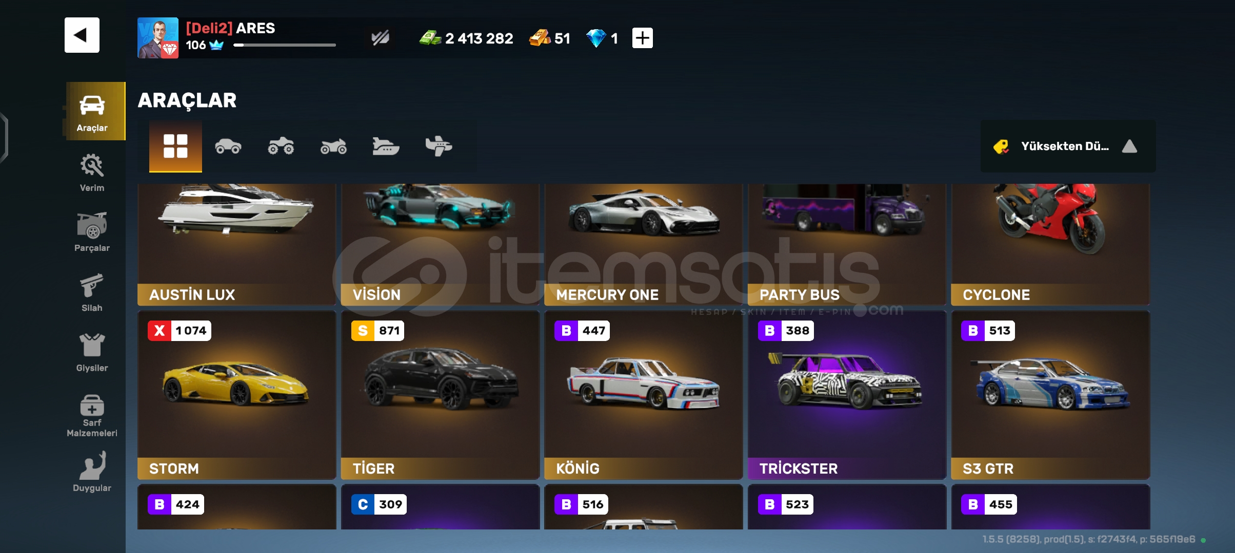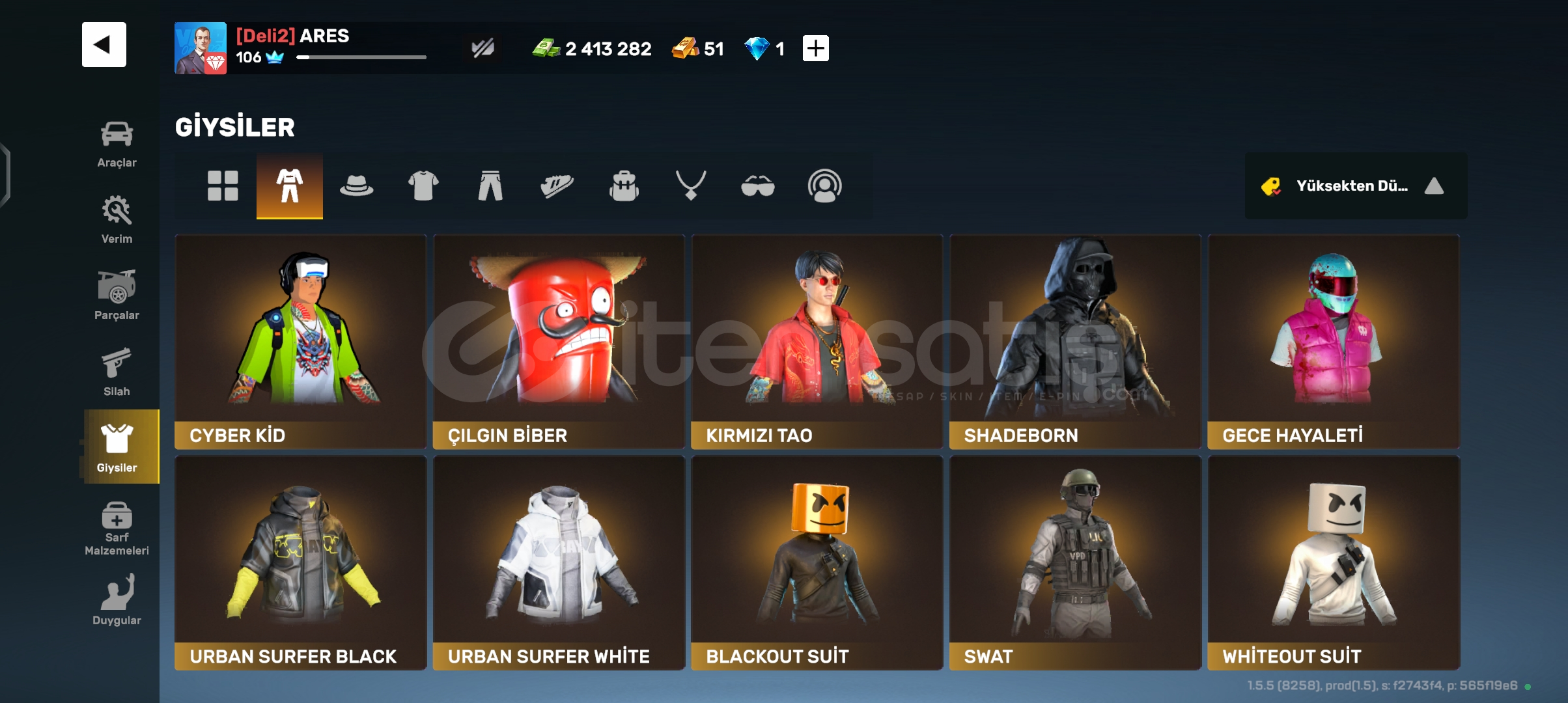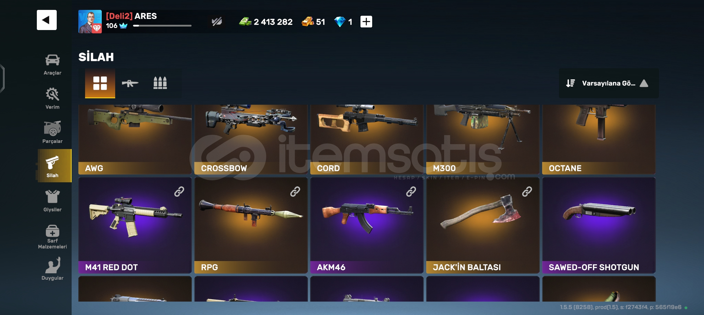 Hesapta güzel araçlar kıyafetler silahlar ve bir çok şey vardır yükseltilmiş silahlar da dahil alıcısına şimdiden ho