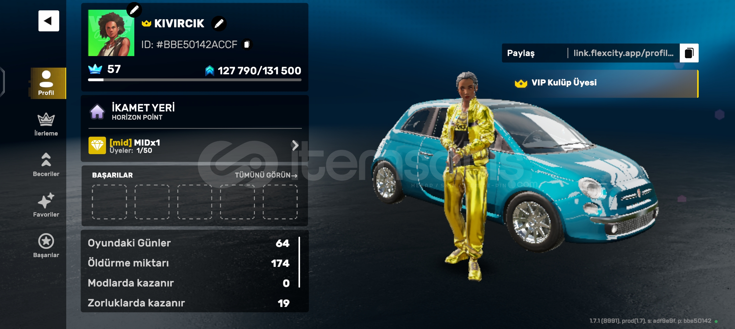 Yan hesabtir VIP açık Flex pas açık