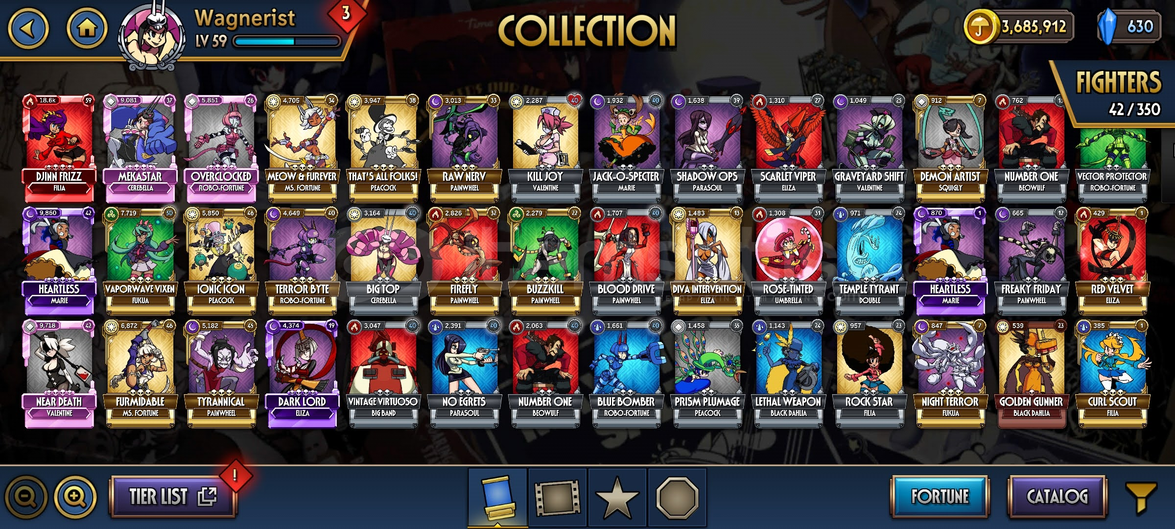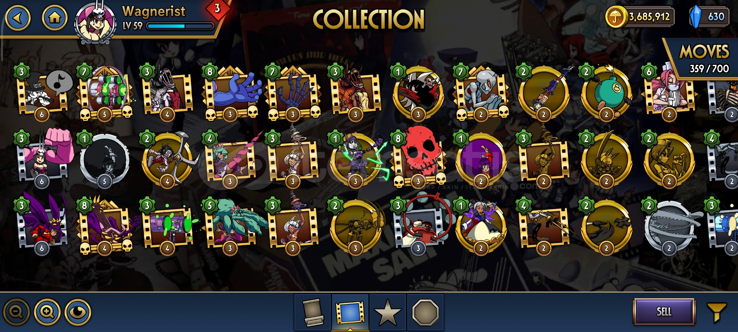 Skullgirls 59sv 42kart 3m altın 630elmas uzman