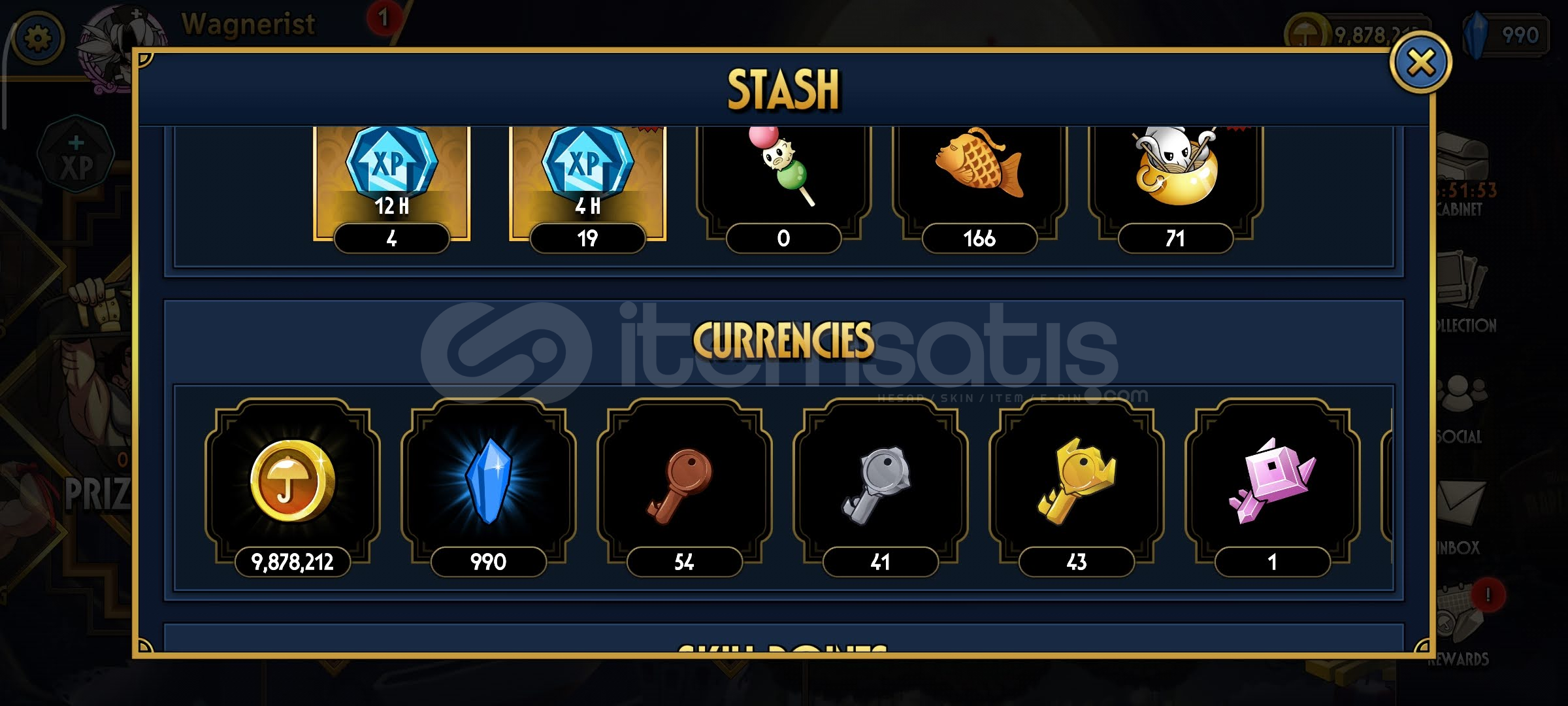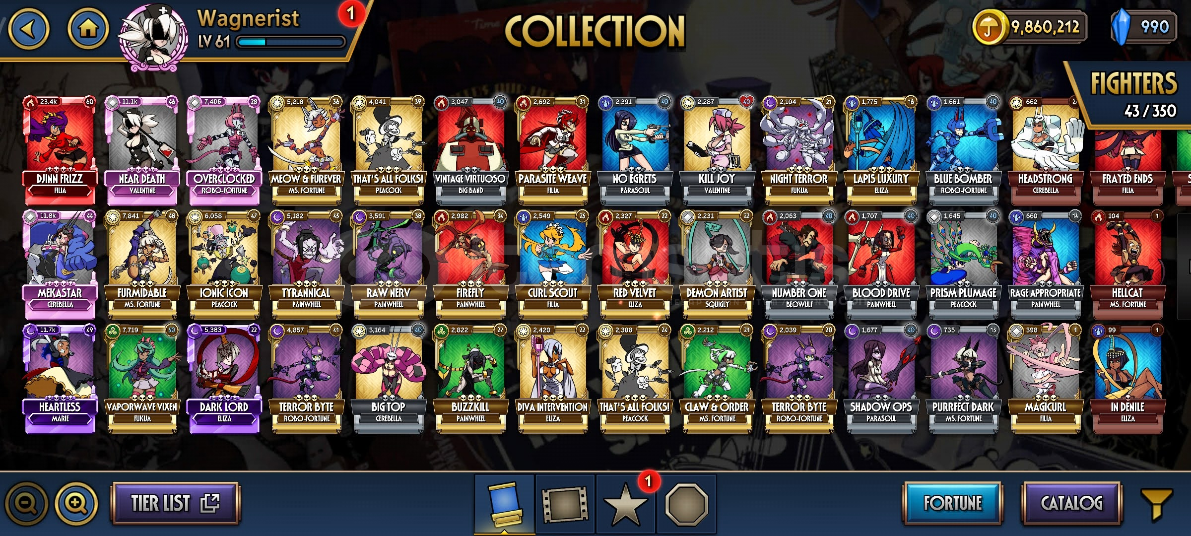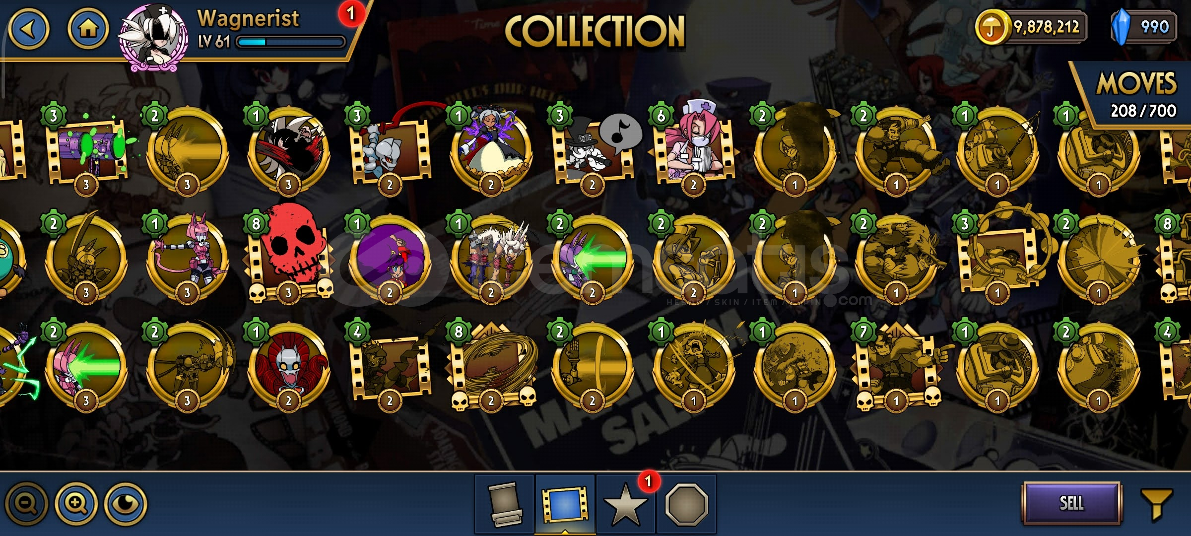 Skullgirls 61sv 9m altın 990elmas 43kart