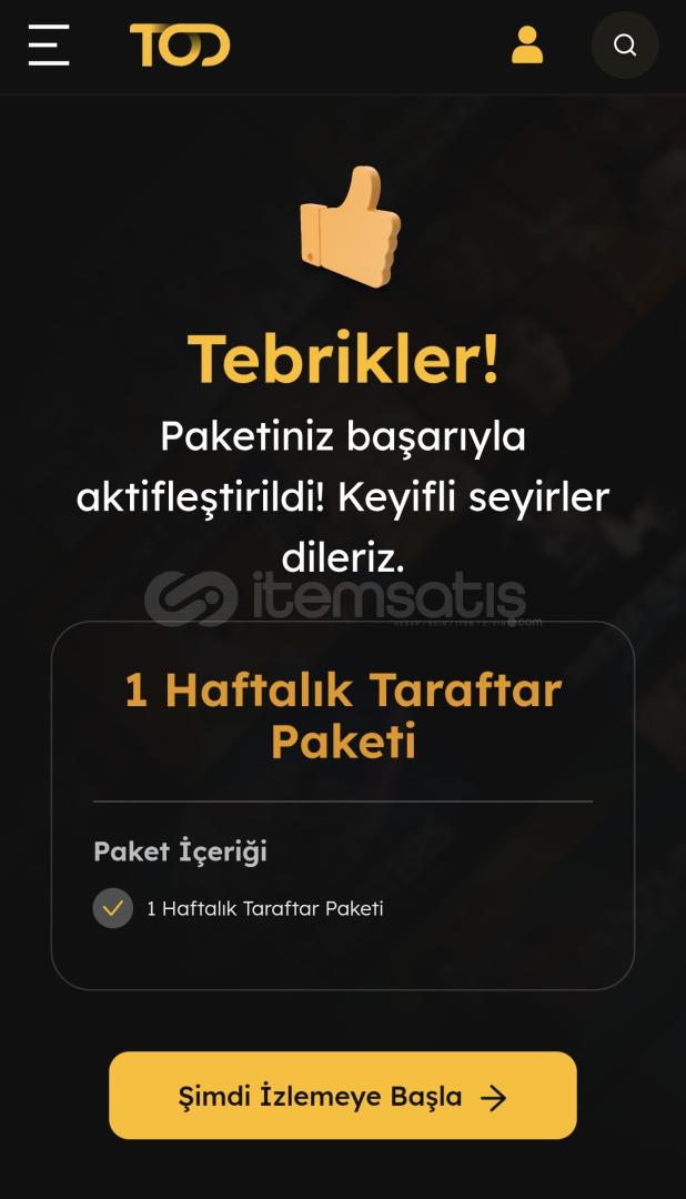 Tod haftalık taraftar paketidir . Kodu hesabınıza aktifleştirebilirsiniz.Tuttuğunuz takımın maçını kesinsitisiz izleyin . Maçları kesintisiz izle !