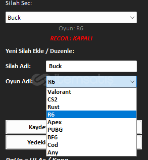 • Recoil durumunu (Açık/Kapalı) anlık olarak ToolTip üzerinden takip etme