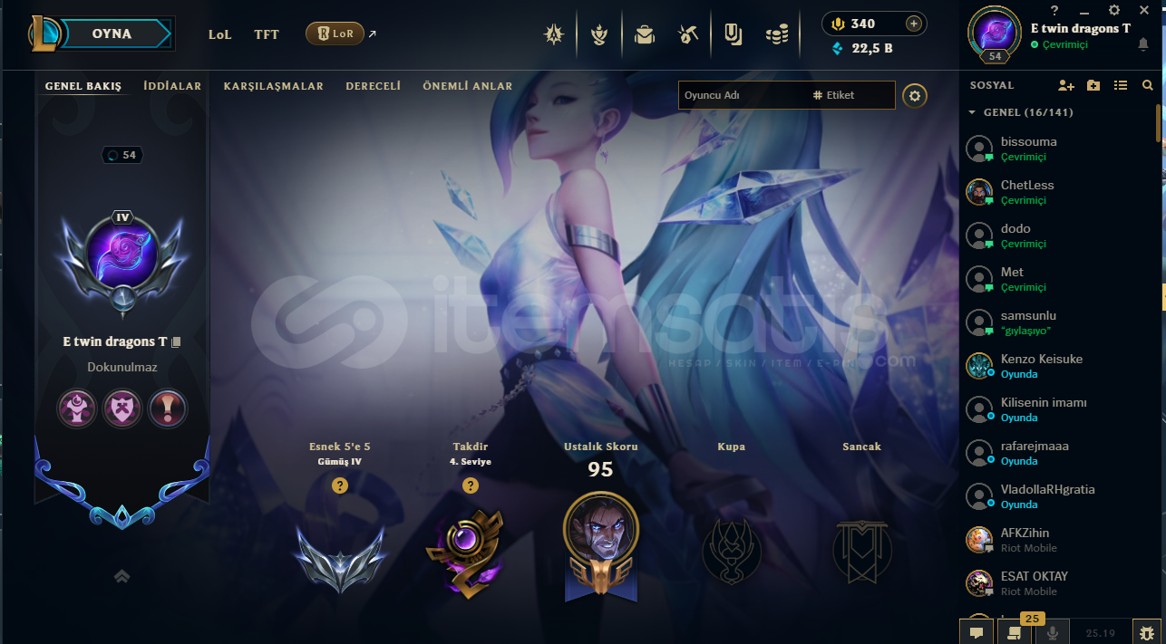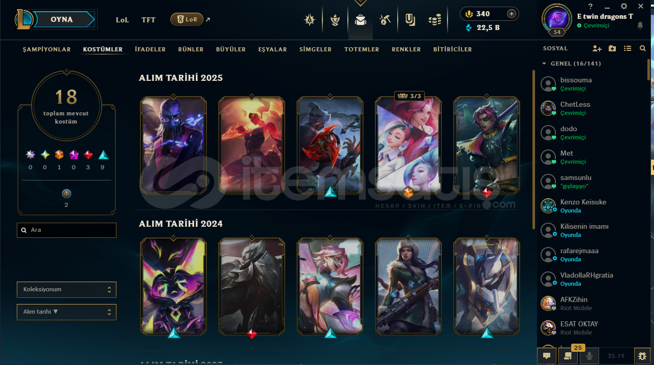 Merhaba, bu ilanı 'diğer' yapmamın nedeni 2 hesabı birden satmam.Valorant-Gaia Vandal-Sırçiçeği Sheriff-RGX KarambitLol'de de kostüm dolu fotoğraftakiler.(Ayrı satmıyorum)VALORANT GOLD 3LOL GUMUS 4