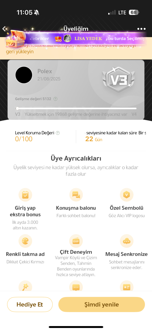 Hesapta 3 seviye kendine ait odası cazibesi iyi vip 3 hesap