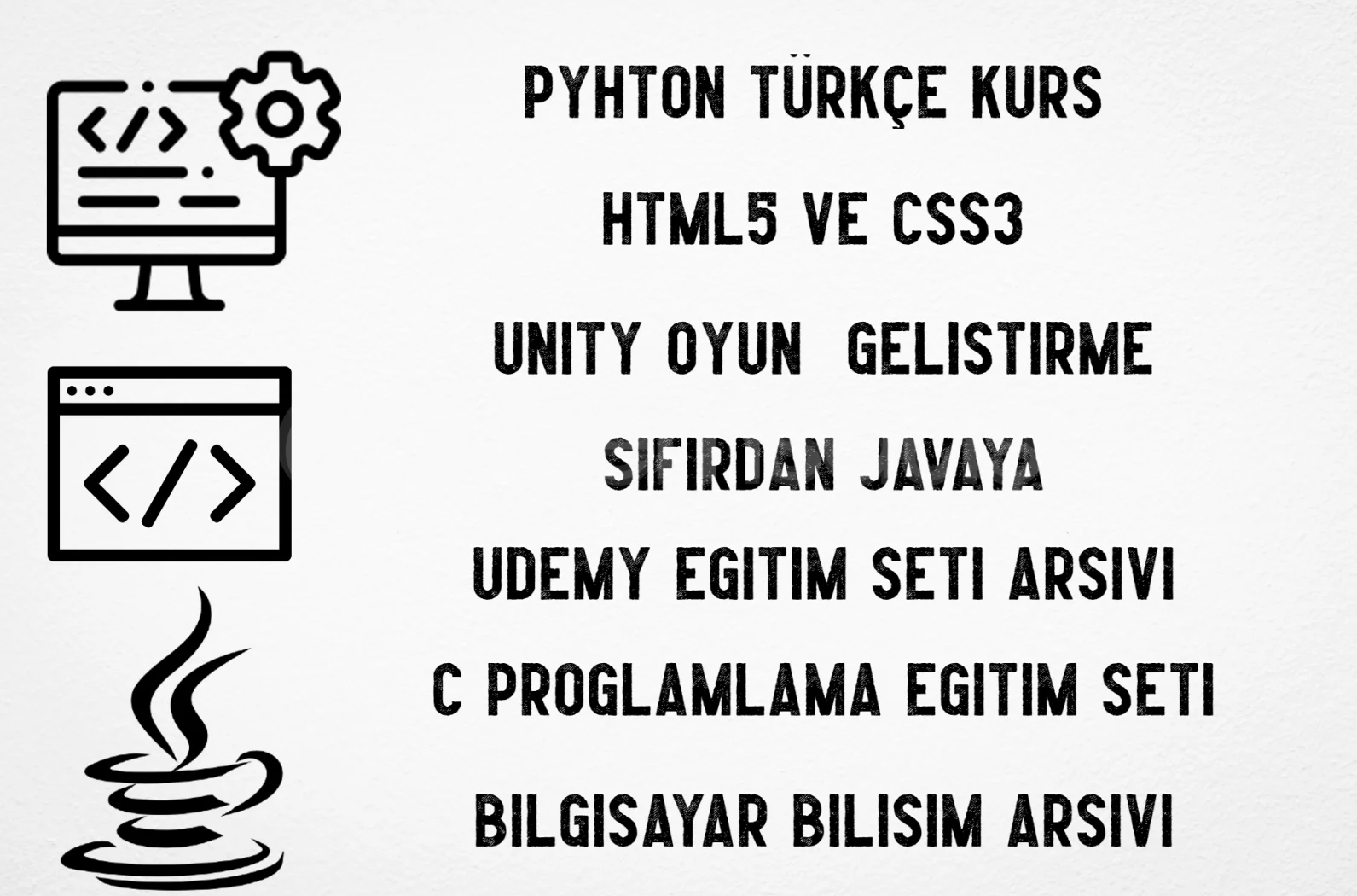 İÇERİK-------------------PYHTONPYHTON TÜRKÇE KURSHTML5 ve CSS3CBİR YAZILIMCININ YOL HARİTASIUNITY C# SIFIRDAN 2D & 3D OYUN GELİŞTİRME EĞİTİMİPROGRAMLAMA DİLLERİ PDFJAVAUDEMY EĞİTİM SETİ ARŞİVİSIFIRDAN JAVAYAC# DERS ARŞİVİC PROGLAMLAMA EĞİTİM SETİPC DERS KONULARIBİLGİSAYAR BİLİŞİM ARŞİVİOTOMATİK ...