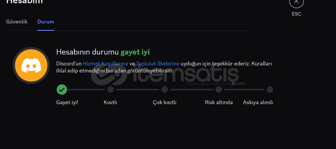 Hesapta herhangibi bir TOS kurallarına aykırı bir hamle yapılmamıştır