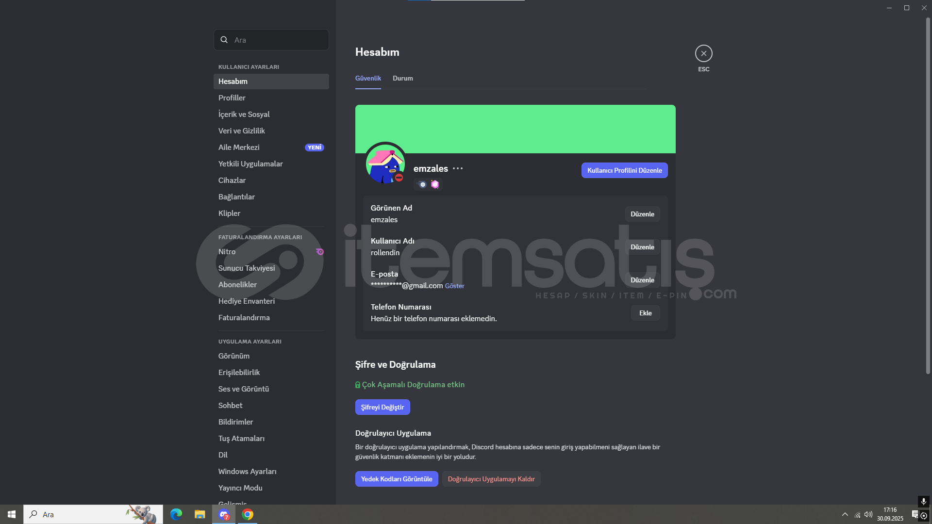 HESABIN OG MAİLİ PB İHTİMALİNE KARŞI ALICININ RAHATLAMASI AÇISIYLA BAŞKA BOŞ BİR HESABA AKTARILIP BANLATILMIŞTIR PB İHTİMALİ 0'DIRHESABIMIZ 2023 KURULUM OLMAKLA BERABER HİÇ BİR KISITLAMASI YOKTUR.HESAPTA SINIRSIZ BOOST BUGU OLMAKLA BERABER AYLIK NİTROSU YENİ ALINMIŞTIR16 ŞUBAT TARİHİNDE 24 AYLIK BADGEYE GEÇECEKTİR HESAP 0 ARKADAŞ 0 SUNUCU OLARAK TESLİM ED&#...