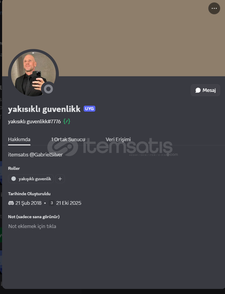 Hesapta 4 Rozet bulunuyorHesap 05.02.2016 kurulumluHesabın içinde bir adet profil efekti bulunuyorTemiz ve güvenli hesaptırHesabın içerisinde 21.02.2018 kurulumlu bot mevcuttur (Bot o hesaba aittir)Lütfen satın almadan önce mesaj yazın!